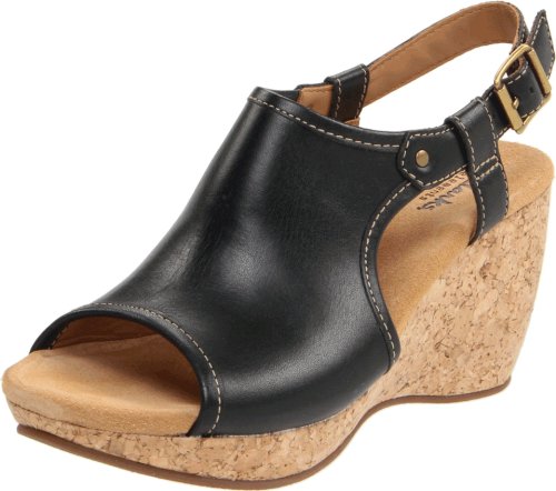 ... [ Read More ... Clarks Women's Harwich Helm Wedge Sandal,Black Leather,7 M US ]